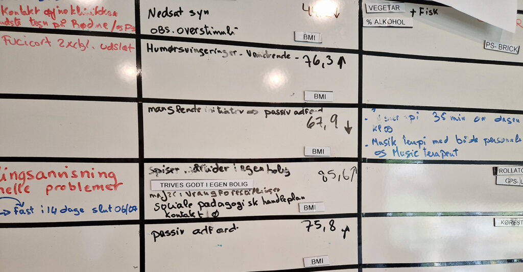 Da de i begyndelsen af projektet lavede audit på alle beboere, var der en række ting, der skulle registreres. Bl.a. om der var en demensdiagnose eller en psykiatrisk diagnose. Her begyndte et mønster pludselig at vise sig.